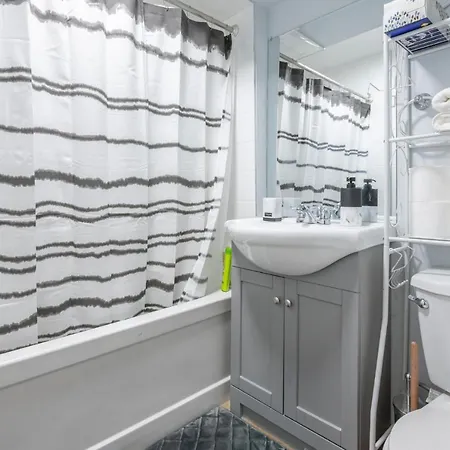 تشتمل Centerstreet-Cozy 1Bedroomsuite على التلفزيون بشاشة مسطحة مع قنوات فضائية، فضلاً عن وسائل الراحة مثل مكواة مع طاولة الكي ولوازم كيّ الملابس لإقامة أكثر متعة. تم تجهيز الحمام بالمرحاض المنفصل وحوض الاستحمام والدوش، بالإضافة إلى مجفف الشعر والمناشف.